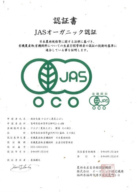 やまびこ農苑が、オーガニックJAS認証を取得しました!